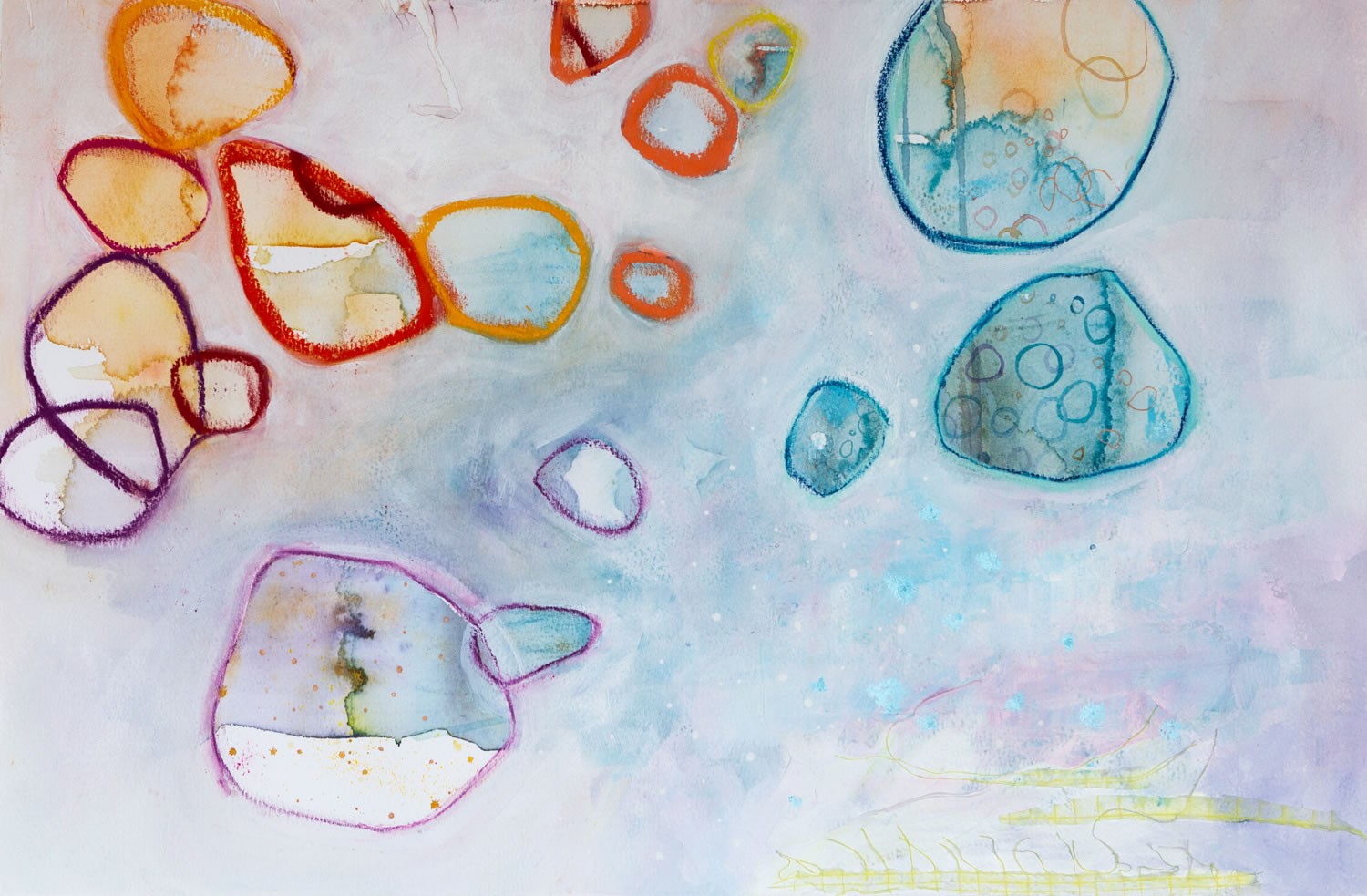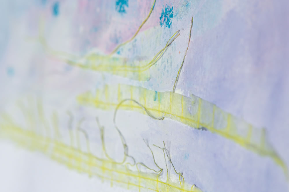 Pastel suave acrílico, barra de óleo sobre papel